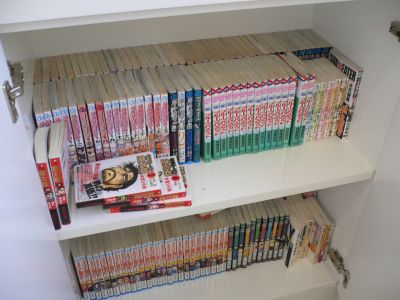 展示ケース横の扉を開けると、漫画がいっぱい並んでいたりします。 |